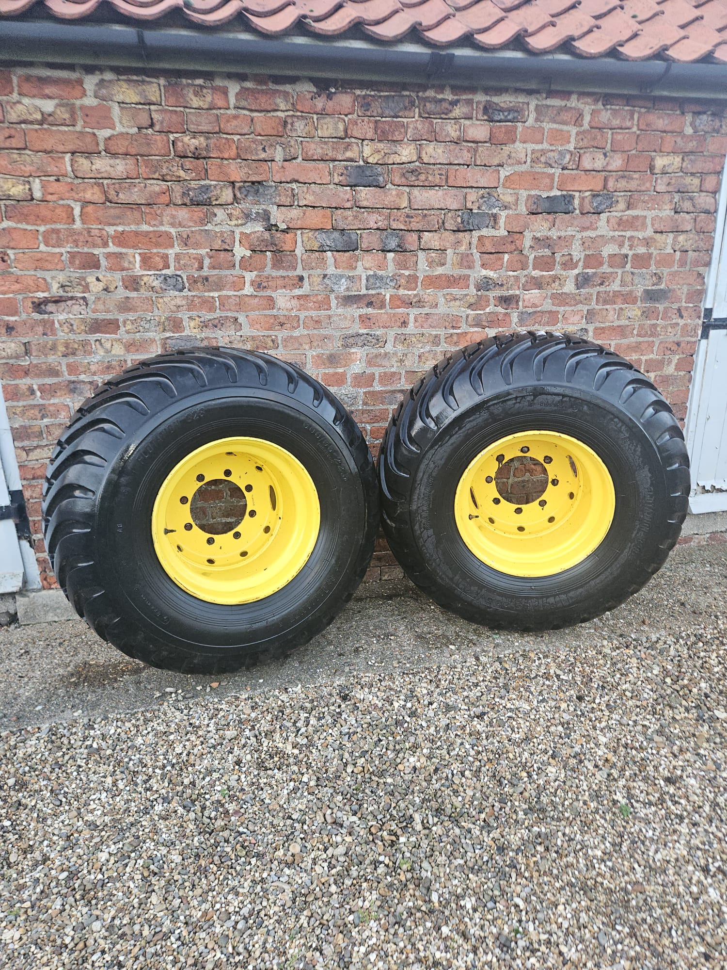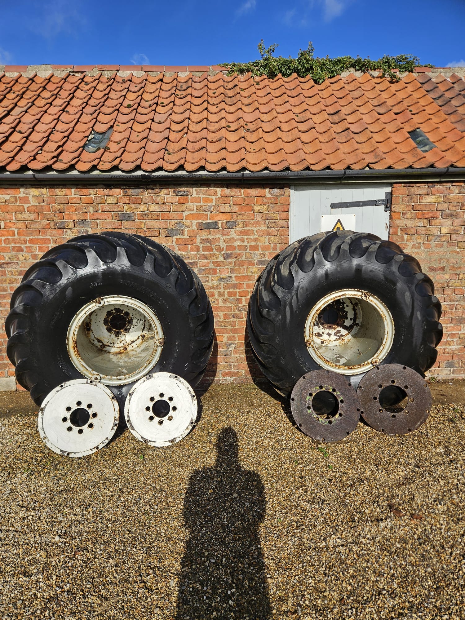 WHEELS & TYRES: Pr of AgriMax 460/85R38 tyres, 50%; Full set of Terratyres, 550/60-225 & 66x43.00-25 50%; 2 Terra Tyres on Wheels (For John Deere 6 Series) - Goodyear tyres 66 x43.00-25NHS w/ 2 extra wheel centres; 2 Flotation Tyres on Wheels (For John Deer 6 Series - Alliance tyres 600/55-22.5s; 4 Landrover Rims & Tyres